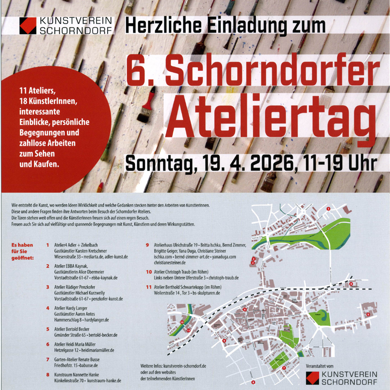 Schorndorfer Ateliertag am 19.04.2026 von 11-19 Uhr